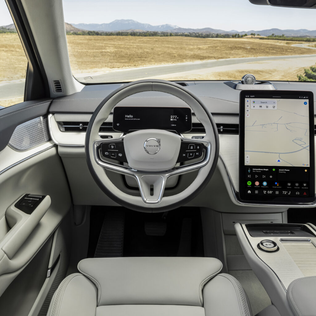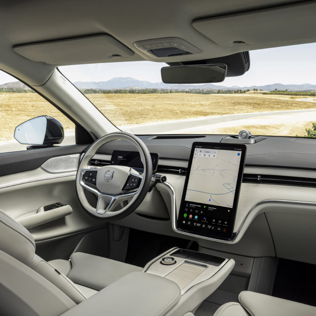 There’s something inherently reassuring about a Volvo, isn’t there? It’s a trust earned over generations. The EX90 Plus takes that trust and projects it into the future. From the moment you see it, the EX90 Plus speaks a design language of understated elegance. Clad in a refined Sand Dune exterior, contrasted by a sophisticated Charcoal/Cardamom interior, it’s unmistakably a Volvo, but modernized, smoothed, and aerodynamically optimized for its electric heart. The signature “Thor’s Hammer” ultimate LED headlights with DRL are there, but subtly integrated, almost hinting at the cutting-edge technology hidden within. The clean lines, flush door handles, and gently sloping roofline aren’t just aesthetically pleasing; with a drag coefficient (Cd) of just 0.29, they’re engineered for efficiency, reducing drag and extending range. It’s a vehicle that stands out not by shouting, but by its quiet, confident presence – the kind that makes you look twice, then appreciate the thoughtful details.