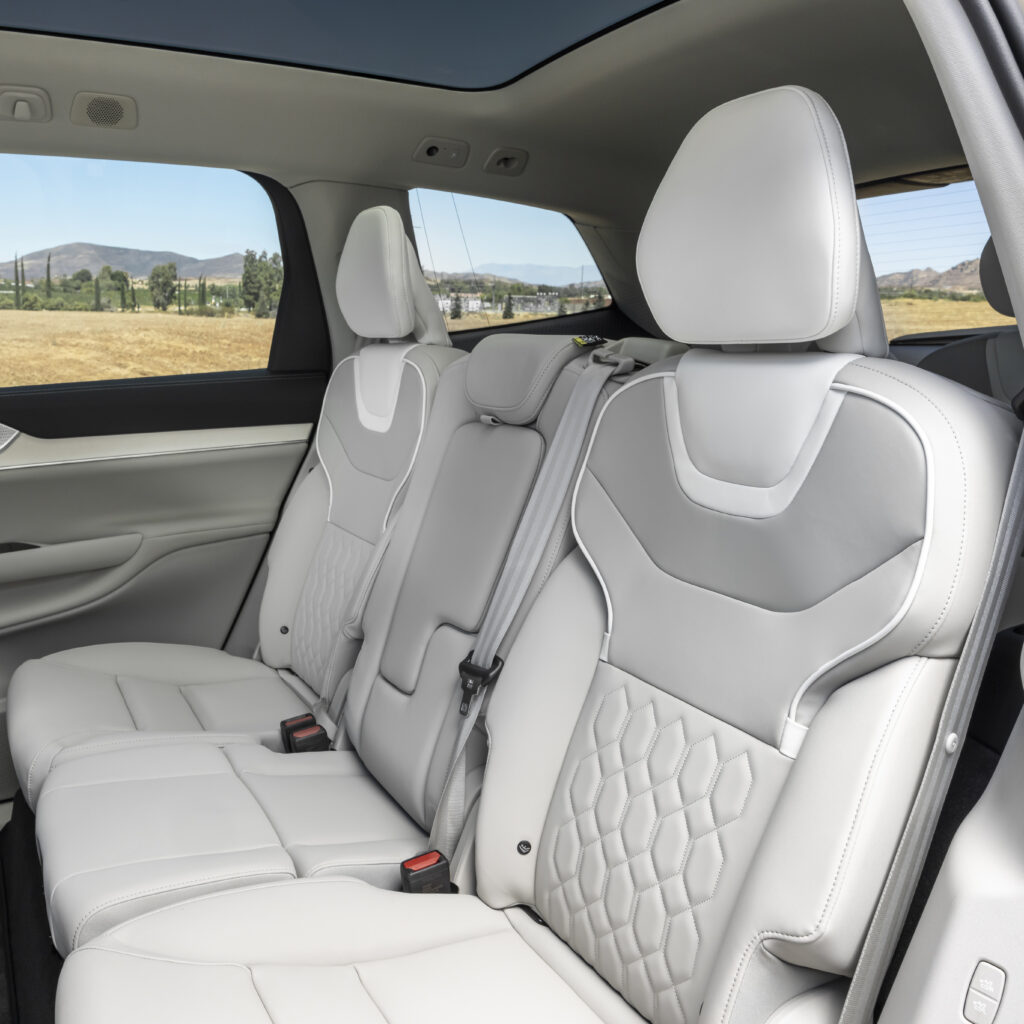 For most families, the standard 7-passenger configuration is ample. The second and third rows are genuinely usable, offering comfortable seating for adults and children alike. An integrated centre booster cushion in the second row adds to family convenience. 4-zone automatic climate control and a Heat Pump ensure everyone remains comfortable regardless of the outside temperature, a crucial consideration winters get colder and summers hotter. Luxuries like power adjustable heated front seats with manual cushion extension, heated steering wheel, heated rear seats, and a graphical Head-Up Display further enhance the driving experience. Even the wheels are purpose-built, featuring 20″ 5-spoke Aero wheels (255/50R20 Front / 285/45R20 Rear) designed for both aesthetics and efficiency.